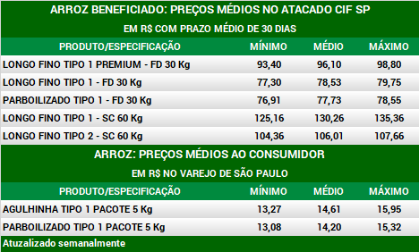 Arroz beneficiado: preços no atacado e no varejo