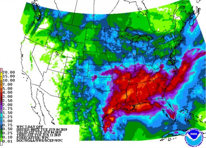 EUA: mapa de chuvas para os próximos sete dias