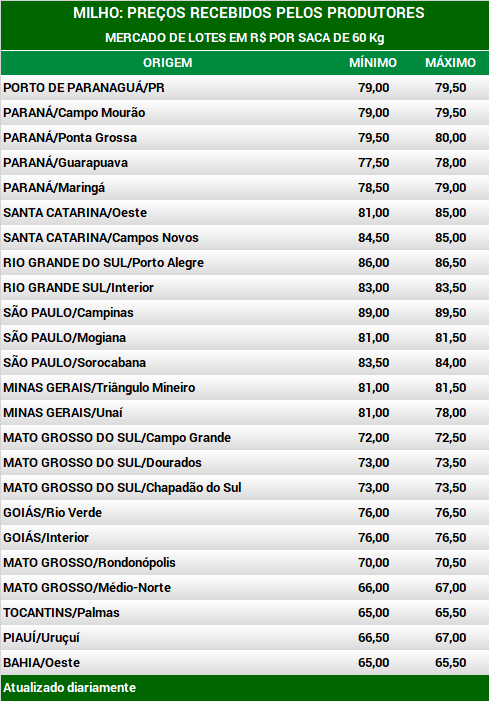 A tendência é altista para o milho no mercado interno, com as cotações futuras em Chicago sustentadas ao redor dos US$ 5,50 por bushel, dólar em patamares elevados e ultrapassando a marca de R$ 5,50, vendedores retraídos, demanda externa e interna aquecidas e atraso na implantação da 2ª safra de 2021. Os valores do milho continuam registrando altas no mercado interno. No Brasil, prevalece a pressão de vendedores, que estão firmes em suas posições. Os produtores estão atentos à colheita da safra de verão (1ª safra 2020/2021) nas Regiões Sul e Sudeste do País e à semeadura da 2ª safra de 2021, principalmente na Região Centro-Oeste e em algumas regiões do Paraná, com baixo interesse nas negociações. Os compradores com necessidades imediatas, por sua vez, acabam cedendo a valores maiores. Assim, o Indicador ESALQ/BM&F (Campinas/SP) está subindo, cotado a R$ 85,59 por saca de 60 Kg, recorde nominal da série do Cepea, com alta de 1,8% nos últimos sete dias.
