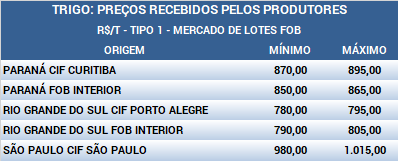 No mercado doméstico, as cotações seguem em queda, devido à baixa liquidez. Vale ressaltar que, por enquanto, os maiores valores pagos ao cereal importado não influenciaram com intensidade nos preços internos. Nos últimos sete dias, os preços registram recuo no mercado de balcão (valor pago ao produtor), de 0,8% no Rio Grande do Sul, 0,2% m Santa Catarina e 0,1% no Paraná. No mercado de lotes (negociação entre empresas), os valores apresentam baixa de 0,8% no Paraná, 0,7% no Rio Grande do Sul e 0,5% em Santa Catarina. No cenário externo, os preços argentinos e norte-americanos também recuaram. Nos Estados Unidos, o contrato de vencimento Maio/2019 do Soft Red Winter apresenta queda de 1,6% nos últimos sete dias, a US$ 4,28 por bushel (US$ 157,26 por tonelada). Na Bolsa de Kansas, para o contrato de mesmo vencimento, o trigo Hard Winter acumula desvalorização de 1,7% no período, a US$ 3,93 por bushel (US$ 144,40 por tonelada).