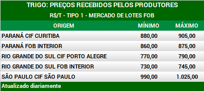 Qualquer variação no preço do trigo tem impacto direto para os fabricantes. O repasse não será imediato porque as indústrias têm estoque suficiente para suprir em média de dois a três meses das atividades. Em novembro, a valorização do dólar ante o Real atingiu 5,8%, alcançando máxima de R$ 4,27. No acumulado do ano, a moeda norte-americana avançou cerca de 8% ante o Real. Fonte: Agência Estado. Adaptado por Cogo Inteligência em Agronegócio.