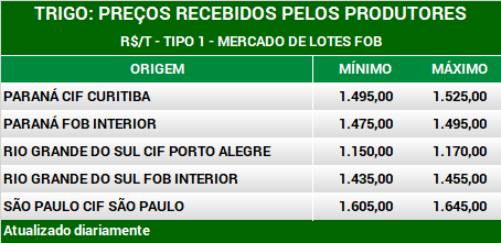 Segundo o Departamento de Economia Rural (Deral/Seab), mesmo que parte do trigo seja substituída pelo milho 2ª safra neste ano, a área tende a superar o total de 1,1 milhão de hectares que foram plantados com trigo no ano passado. Os custos com sementes, fertilizantes e agroquímicos estarão maiores em função do aumento na procura, influência do câmbio e do petróleo. Mas, o incremento nas despesas não será proporcional à elevação no preço do trigo, em torno de 50%. Atualmente, o trigo está cotado a R$ 1.496,38 por tonelada no Paraná, ante R$ 985,49 por tonelada registrado no mesmo período do ano anterior. O principal 'driver' para plantio é o aumento das margens da própria cultura.